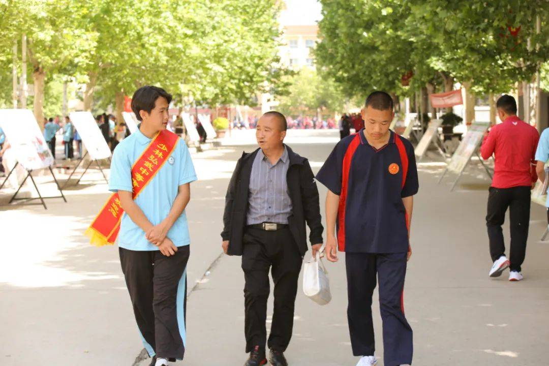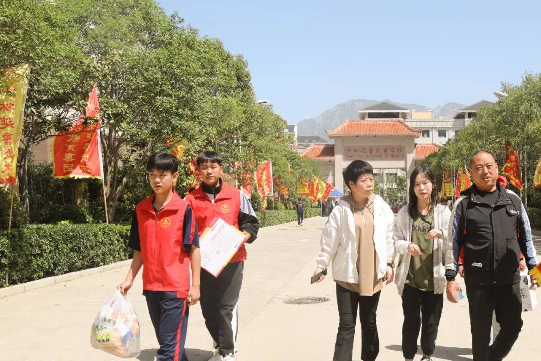 身着红马甲的是校园志愿者。在现场,他们活跃在校园的各个角落,他们用行动和微笑当好东道主,向远道而来的家长,展示着延鲁人热情、友好、自信的形象。