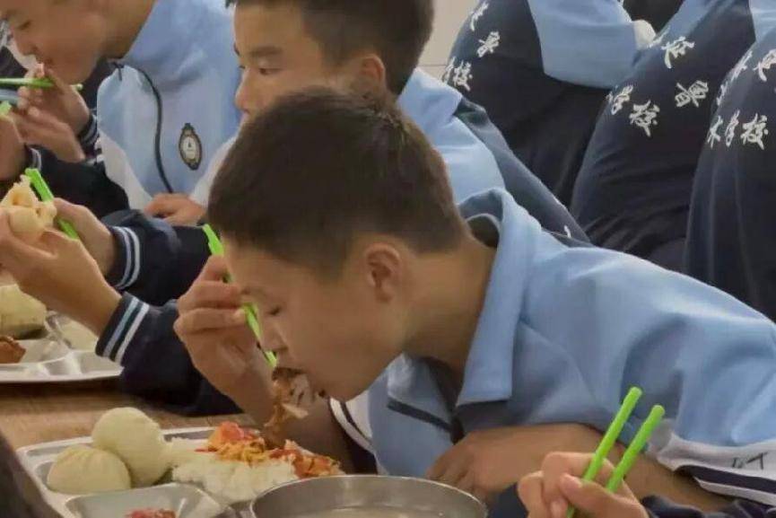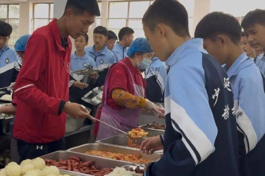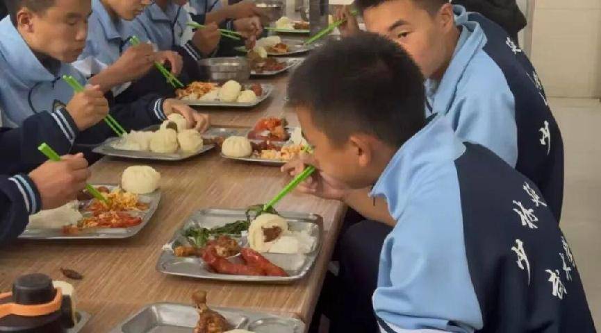 学校餐厅也早早准备了丰盛的餐食。同学们围坐在一起,分享着餐盘里的美味,像在家中与家人共享团圆餐般热闹。饭菜的热气氤氲了眼眶,也温暖了心房。这一顿充满烟火气的中秋餐,没有山珍海味,却有着家的温度,让延鲁学子多了一份难忘的“烟火记忆”。