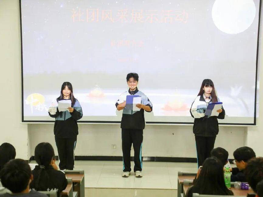 10月5日下午,社团联合会精心筹备的展演拉开了帷幕。音乐社的成员们用悠扬的旋律奏响中秋乐章,让灵动的音符在校园里流淌;舞蹈社的学生们以优美的舞姿诠释着青春活力,每一个动作都充满力量与美感;小品演员则以幽默风趣的表演逗得大家捧腹大笑,将现场气氛推向高潮;播音社的同学们声情并茂,用饱含情感的声音传递中秋的思念与美好。