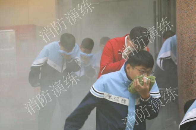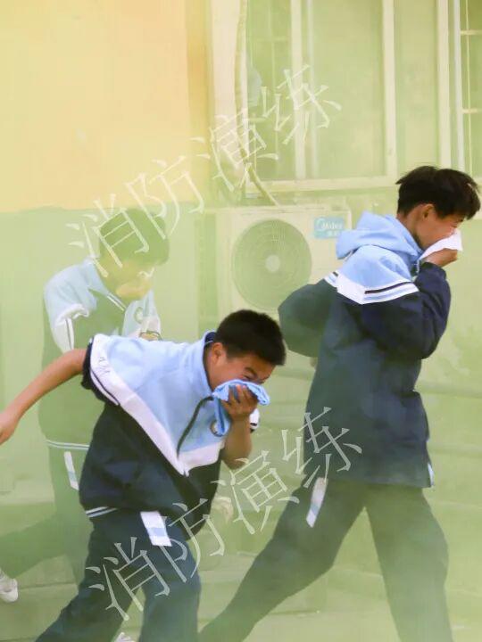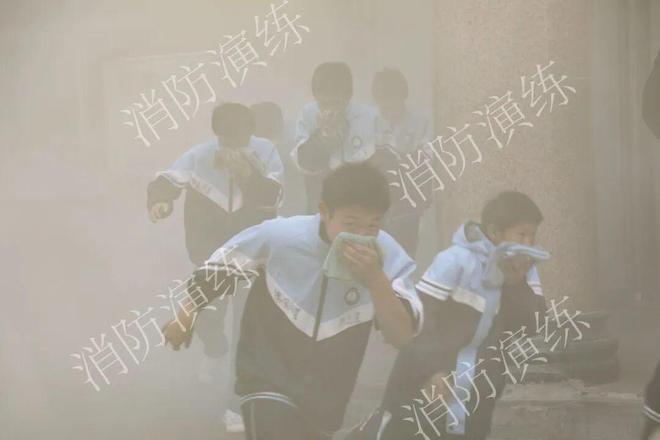 理论培训结束后,消防应急疏散演练随即展开。随着急促的警报声响起,“火灾逃生演练”正式拉开帷幕。应急烟雾弥漫校园上空,全体师生闻声即动,反应迅速。各班教练员及楼层指挥员立即到达指定岗位,引导学生用手或者湿毛巾捂住口鼻,躬身前行,快速有序地撤离火灾现场。到达安全区域后,各班清点人数,整理队伍,将清点结果及时汇报演练总指挥。