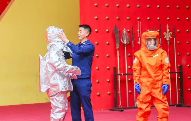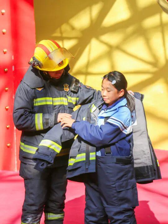 活动现场,消防员首先向师生们展示各类消防服,并详细讲解其功能与穿戴方法。为了让同学们更直观地感受消防员的工作,现场还随机邀请学生亲身体验消防服的穿戴过程。厚重的防护服让同学们切身感受到消防员工作的艰辛与不易,也深刻地认识到消防安全的重要性。