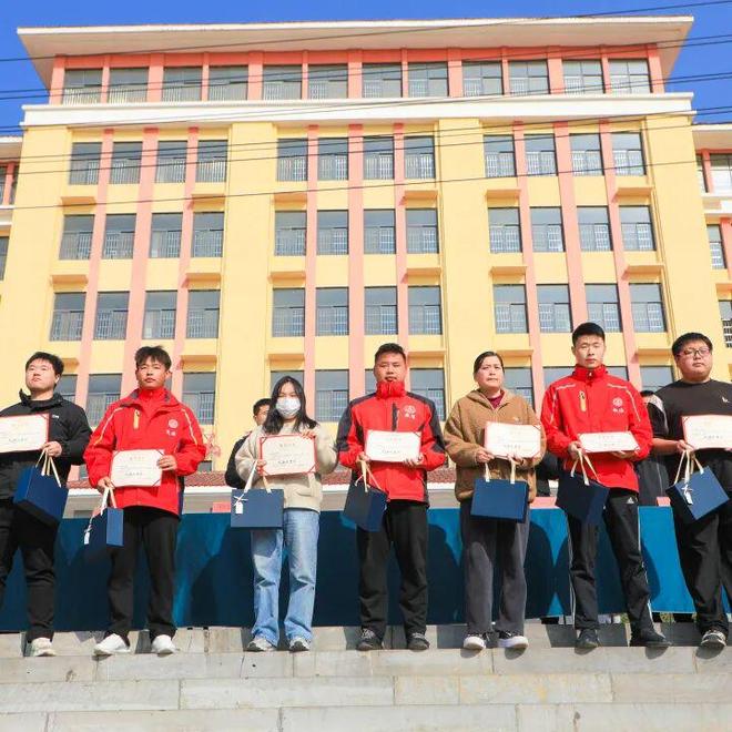 领奖台上,鲜红的荣誉证书与学子们自信的笑容交相辉映,既见证了过往的辛勤付出,也凝聚了未来的奋进决心。