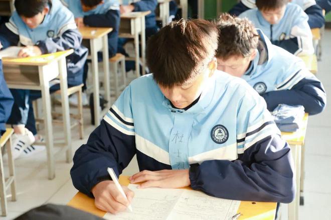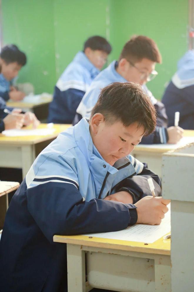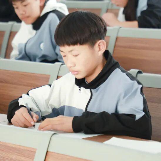 少年志气高,凝神答卷忙。这里既有克难攻坚时的沉稳思索,也有灵感迸发时的流畅表达。他们目光如炬,穿梭于文章段落与数理公式之间,将日常所学融会贯通。那份渐显成熟的专注,如同拔节的竹笋,积蓄着向上生长的力量,朝气扑面而来。
