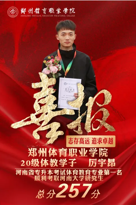 魏振航同学的成功,再次彰显了郑州体育职业学院的办学实力,也更加坚定了延鲁学子走“3+3”升学路径的信心。